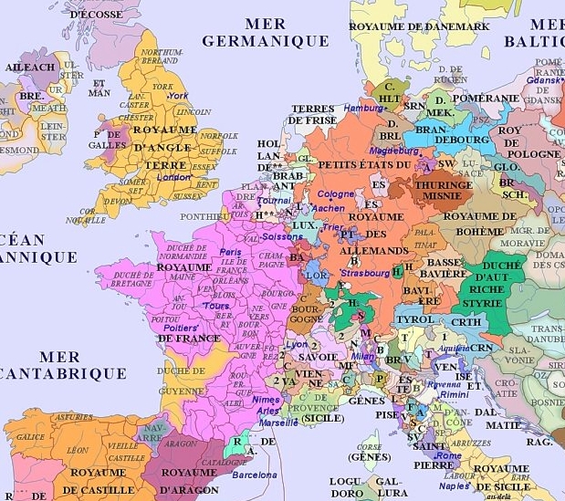 Pass our kindy monk over the maps, following the centuries... Click when you'll see a label, that 'll make appear the related notice. |